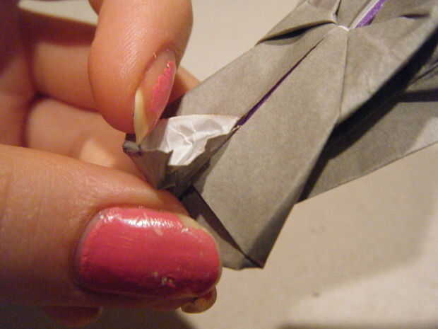 Orquídeas zapatilla dorada de origami (17 / 20 paso)