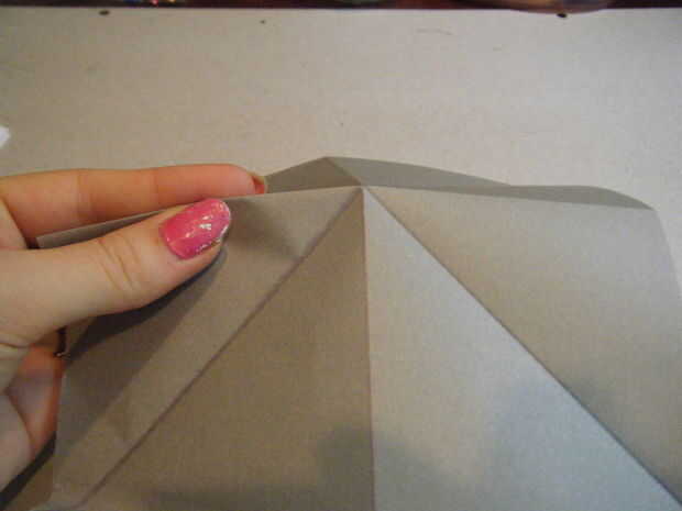 Coge el papel y doblar por la mitad. Tirar de ambos lados hacia abajo y hacia los demás. Pulse la solapa posterior y la aleta derecha juntos. Presione la tapa frontal y la solapa izquierda juntos. Ahora tienes un cuadrado plano con tres capas. Esta es la base preliminar (o cuadrada).