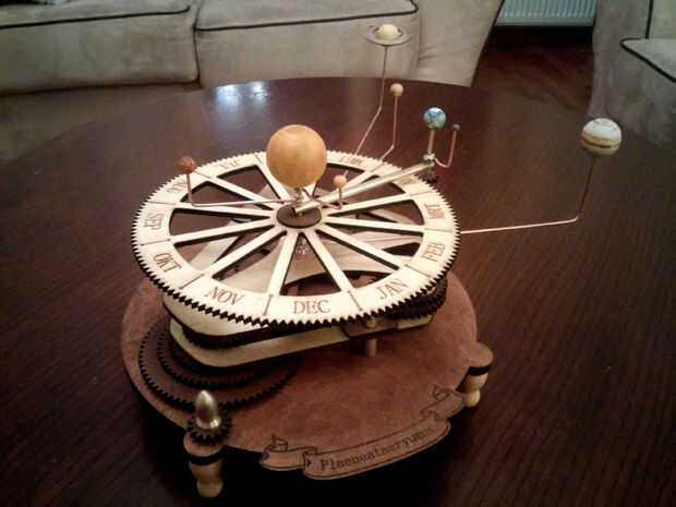 Todas las piezas de madera de nuestro orrery se hacen con un cortador láser. Si no te importa cambiar los planes de corte también es posible hacer con una fresadora.