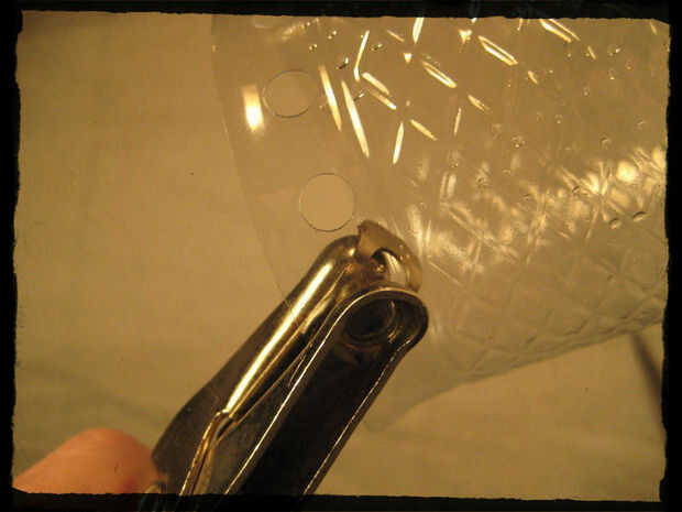 Perfore agujeros en la parte inferior de la botella de 1/2", en el centro.