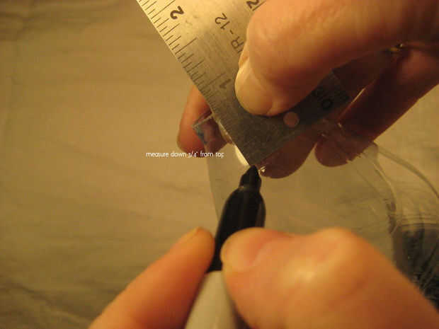 Mida hacia abajo 3/4" de arriba y de marca. Otra marca 2 1/2" de arriba. Ahora medir 1" a través de la forma de huevo como anteriormente en el punto más ancho.
