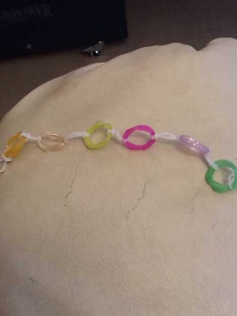 Paso 1: fuentes de Necesita un kit de inicio para el telar del arco iris y algunas elásticas.Paso 2: Colocar las bandas Iniciar colocando un color de borde y no empezar a poner encima de todo lo que tienes que hacer en los patrones.Paso 3: Colocar la