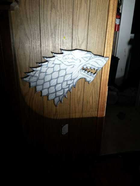 Tenemos que poner esto en la pared con nuestra suspensión recién hecha en la parte posterior y el proyector a la señal de línea para que puedan ver dónde grabar a continuación para los detalles de tu signo.