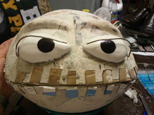 Entonces empecé a cortar y pegar la piel verde en la cabeza.