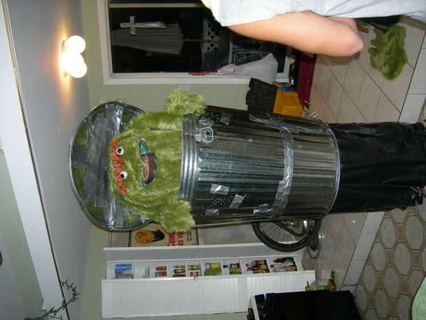 crear un auténtico Oscar el traje de gruñón usando simples y fáciles de adquirir los materiales.Basura puede adquirir un bote de basura de metal y Sierra de la parte inferior. Cubrir el borde áspero en la cinta adhesiva o acolchado para evitar cortar