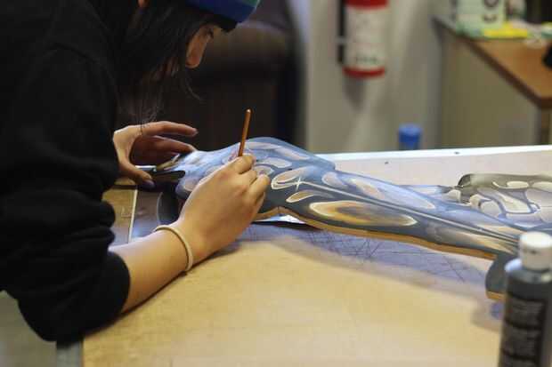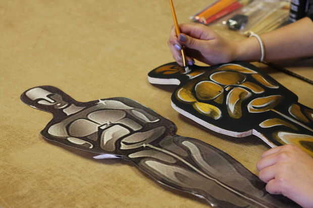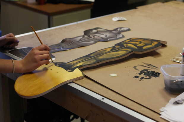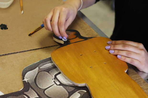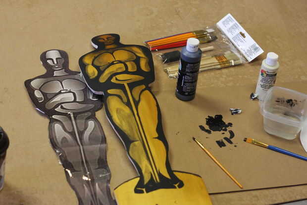 Básicamente comenzó pintando la cubierta toda con pintura acrílica oro y entonces comenzó a agregar pintura negra para definir los detalles del trofeo. El sombreado se logra con una combinación de agua y papel toallas para ayudar a difuminar y desvanecer la pintura negra. Nuestro artista entonces pasó a través y añadido blanco destaca para realmente que el Consejo brille!