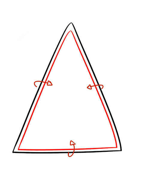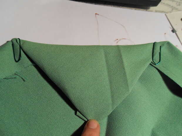 A continuación corté 2 piezas idénticas del material restante para cada esquina del triángulo y cosí justo en la parte superior trapecio ahora esquinas formadas.