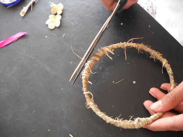 Ok ahora su anillo debe tener un montón de pequeños filamentos sobresaliendo, de esto sólo envolver hojas muy finas de cadena marrón si quieres alrededor de las piezas de callejeros y pegamento para sostener. Si todavía parece cobarde, no sudor, te se mezclan en las decoraciones o tus amiguitos birdy le estafan. Todavía, usted puede corta lo con tijeras para que sea aseado.