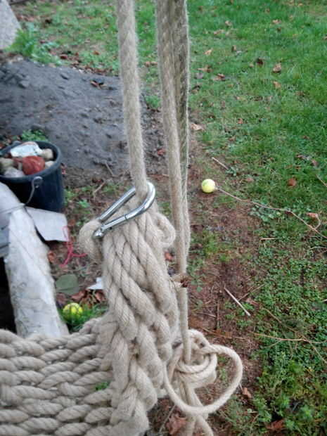 enganchar los mosquetones de 100mm en el columpio