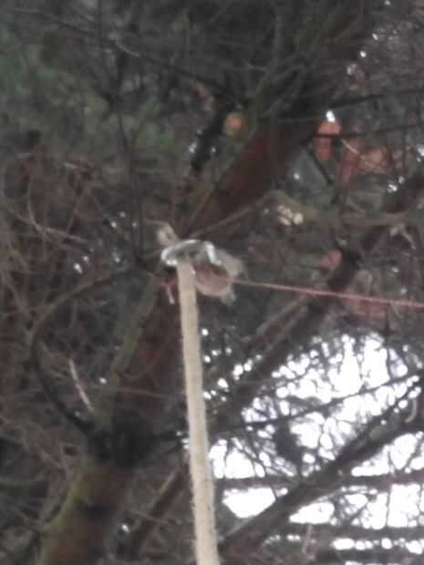 Tire hacia abajo y enganchar los mosquetones de 140mm en su propia túnica y tire de ellas alrededor de la rama