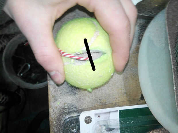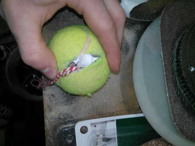 Luego ponga el tornillo o clavo en la bola y llenarlo con arena