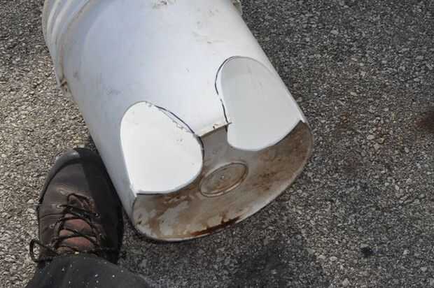Los agujeros de la pierna son dos partes, un par de "Huecos de ratón" en la parte frontal del cubo y parte a corte de la parte inferior de la cubeta para que coincida con.