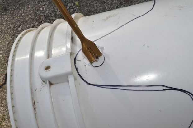 Parece ser más fácil de perforar antes de que corte la parte superior de la canastilla, porque el cubo tiene su forma mejor.