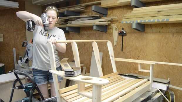 Una vez que el asiento estaba acabado, sólo empezó en la parte posterior y repetí todos los pasos. Os adjunto la parte inferior listón más, luego se trasladó a la parte superior y enroscado en mis más listón primero llena el entre.