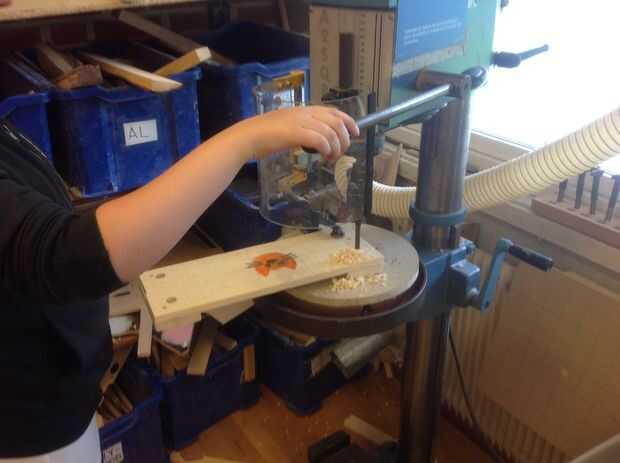 corté un tablero de sit. He perforado los agujeros profundamente. Necesitaba tener la cuerda. Debe ser pulido. He utilizado papel de lija.