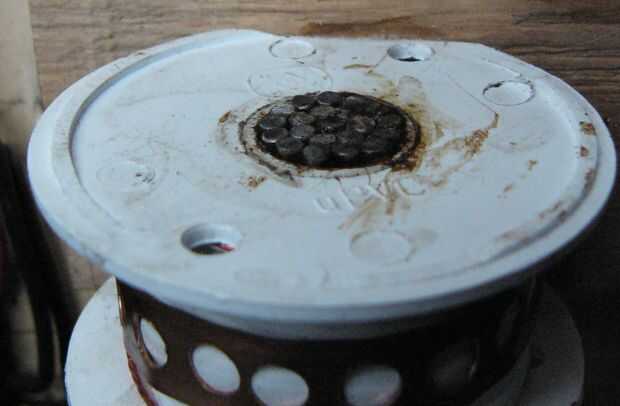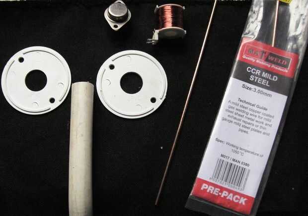 El núcleo de la bobina es cobre cubierto gas barra también conocido como R60 barra de soldadura de la soldadura. Solía llano antiguo laca automotriz de cada pieza de varilla para reducir corrientes de Foucault en el núcleo (reduce también el efecto de calentamiento)