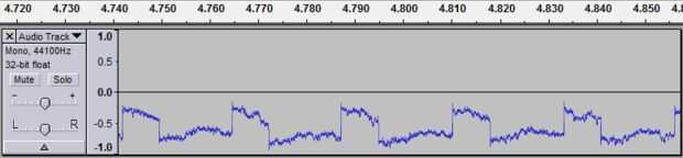 La forma de onda es a cuadrado (bastante ruidosa). Ciclo de trabajo depende de resistencias de carga del condensador y emisor camino