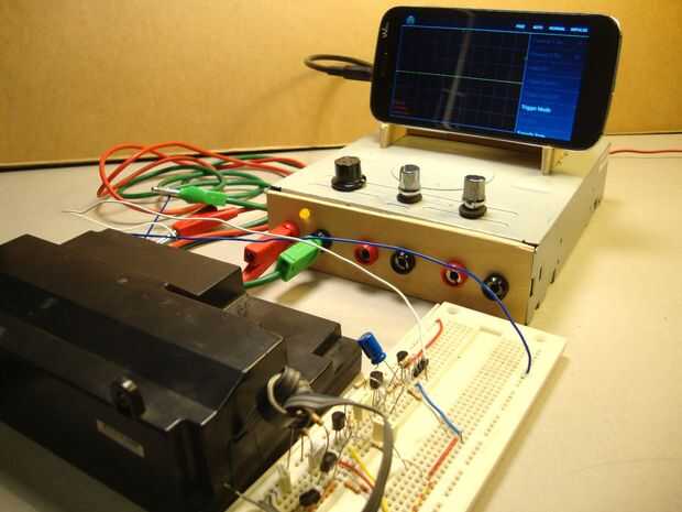 La entrada del osciloscopio de este proyecto funciona a la perfección: el LED de advertencia limita la señal hasta ±1.8V y le permite saber cuando la señal de entrada es demasiado alta. Si este es el caso, es necesario cambiar el rango de la atenuación de la señal a un nivel superior. Luego puede visualizar la señal en su teléfono, usando el osciloscopio.