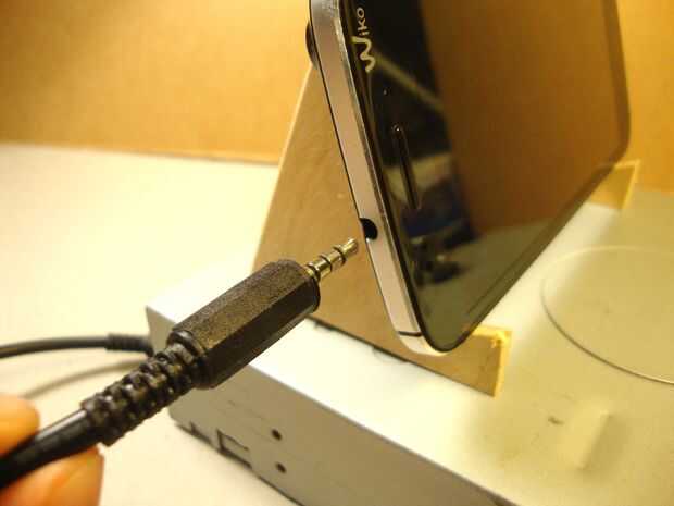 Para ver las obras de resultado, conecte el cable de enchufe masculino para el teléfono y el conector hembra del circuito.