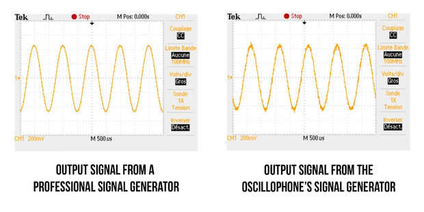 Un examen más riguroso consiste en visualizar una señal de salida del generador de señal en un osciloscopio profesional y se compara con la salida de un generador de señal profesional.