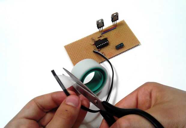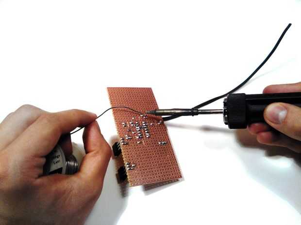 La soldadura de las resistencias, condensadores, transistores y reguladores de voltaje, respetando el esquema electrónico.