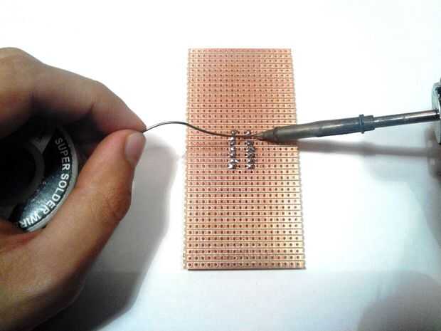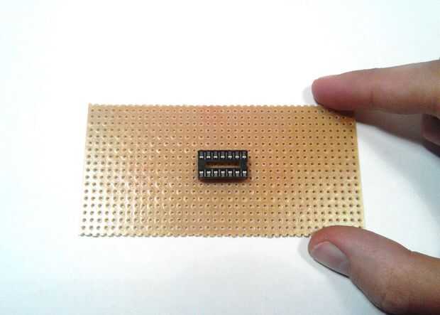Empezar por un portador de IC en el centro de la placa perforada de soldadura.