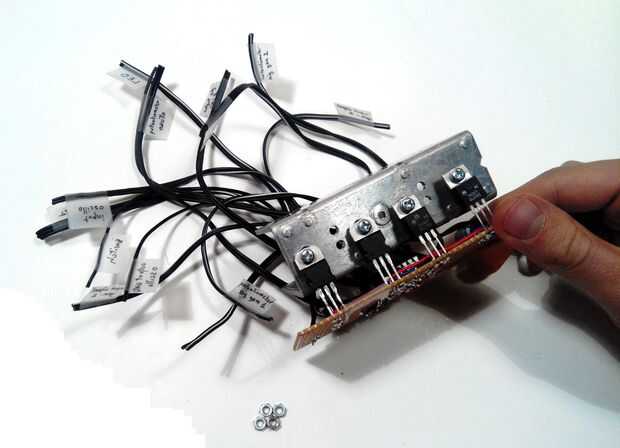 Una vez que el disipador de calor para atornillar los reguladores de tensión y los transistores, es muy difícil identificar los cables: ahora entiendes por qué les es muy útil! ;)