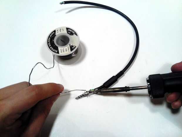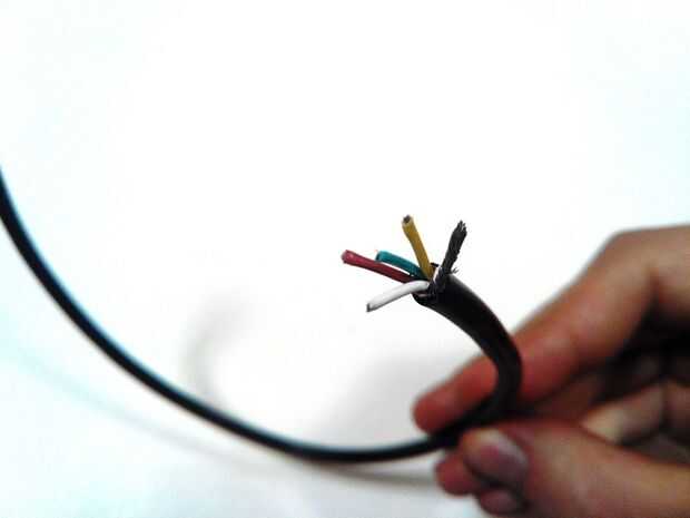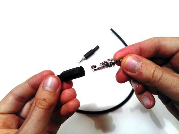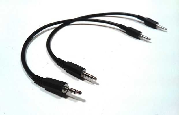Para hacer este cable, comienza por cortar un cable de 4 alambres de 30 cm de largo. Luego la soldadura a cada extremo un conector macho jack, respetando el mismo cableado en cada extremo.