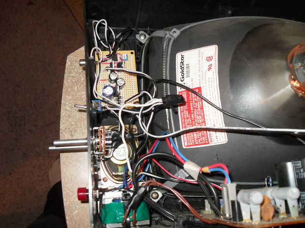 En mi TV, cuando quité el sintonizador analógico, hubo una brecha grande agradable para instalar el amplificador. Hubo incluso agujeros exactamente alinearon con la placa de PC prefabricada que estaba usando. Lucky me. Usted probablemente no será tan afortunado. Encontrar un lugar cerca del interruptor de potencia para asegurar el transformador y cable así que lo activa el interruptor de encendido y se ejecuta ** ** paralelo con el circuito TV. Encontrar un lugar tan lejos del flyback, bobina de deflexión y transformador nuevos como sea posible para el circuito mismo.
