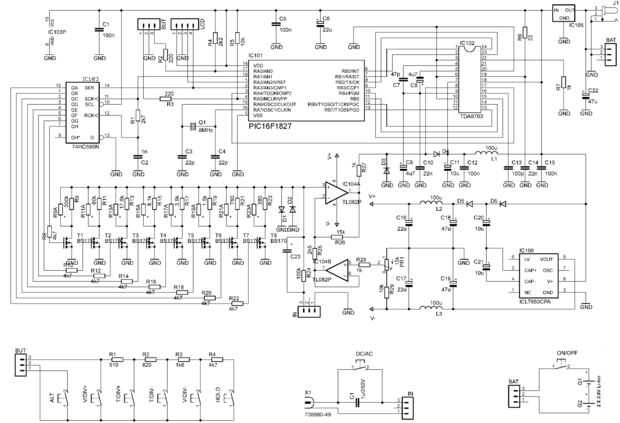 La parte principal es PIC16F1827 micro controlador a 32 MHz (X 4 PLL de cuarzo de 8 MHz).