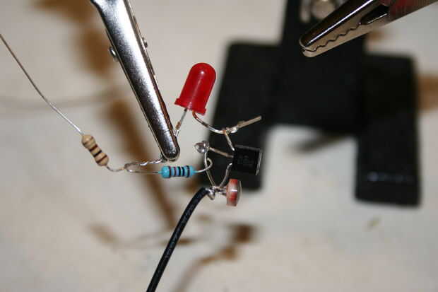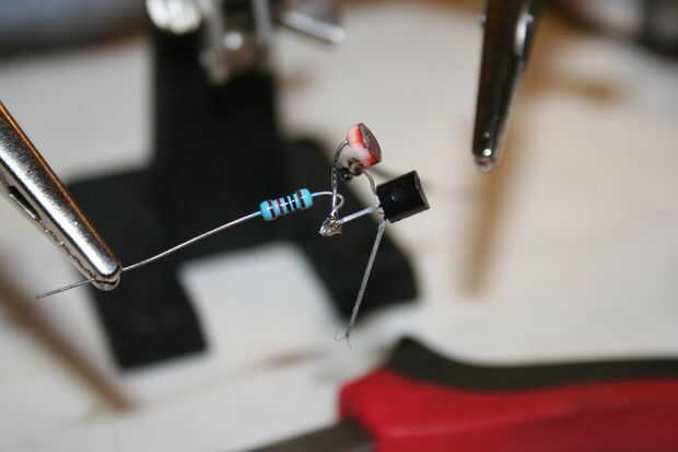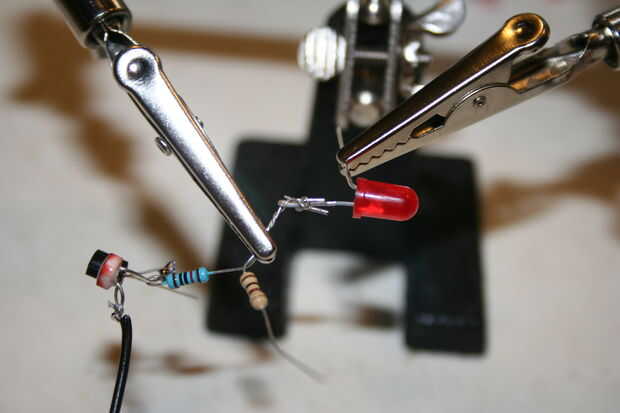 Envuelva un extremo del LDR para el lado negativo del alambre y el colector del transistor (C).