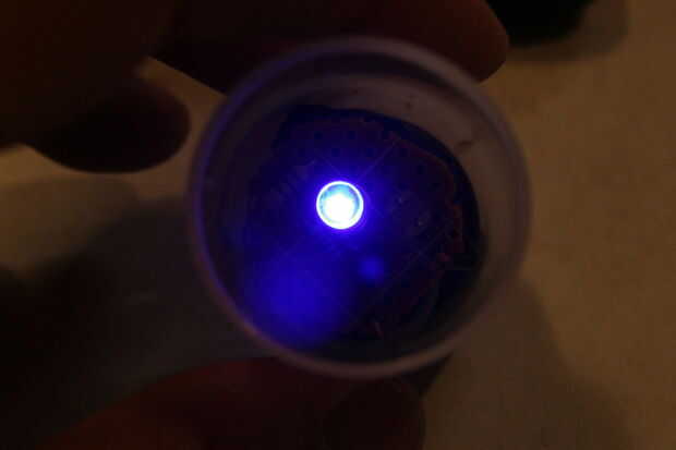 Suavemente la gota circuito en bote. Pegamento en su lugar si lo desea.