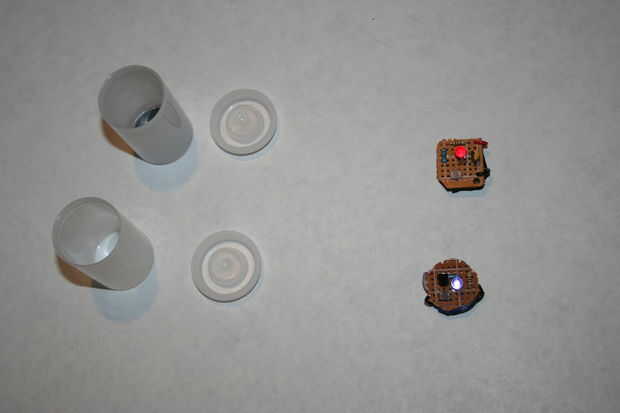 Ahora necesitas los cartuchos de película. Hemos añadido un imán al frasco de una película pero no la otra. Usted puede decidir sobre cómo usted quisiera fuera tuyo. Pensamos que el imán era una mejor idea entonces pegar la batería a la parte inferior de la lata. Más fácil salir y cambiar la batería cuando sea necesario. El único problema es que se sienta superior y da un poquito menos brillo a lo largo de la lata.