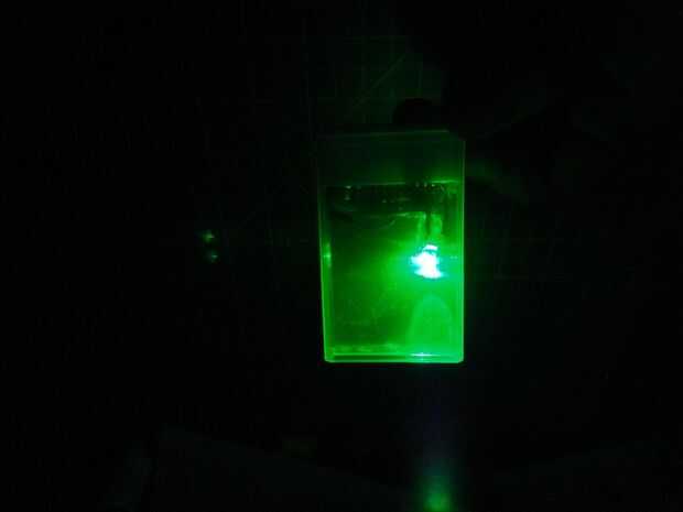 Se enciende brillantemente en un cuarto totalmente oscuro, pero podría iluminar tenuemente en una habitación levemente oscura basada en los niveles de luz.