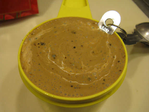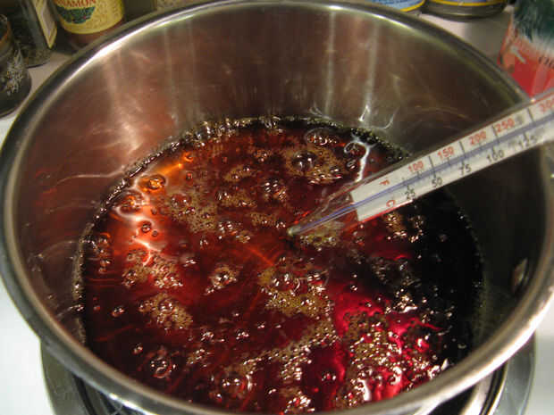 Cuando se pone cerca de esa temperatura, ver de cerca, porque puede cambiar rápidamente! No utiliza un calor muy alto, pero usted puede necesitar algo de potencia para conseguir ese alto. Tal vez media-alta. Cuando empieza a ver deliciosa, tomar fuera del fuego y moverlo a una hornilla de frío inmediatamente. Todavía se oscurecerá un poco más. No golpearlo o lo muevas o raspar el termómetro, podría causar que se cristalizan. Dejarlo para un poco mientras se mezclan la crema y el café.