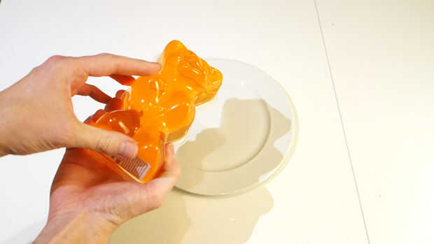 Bueno, es un poco pronto, porque ha desordenado. Espero que lea este instructable entero antes de empezar con su osito de goma gigante. ¿Cómo nos equivocamos? Bien, independientemente de cuánta agitación e insistencia las gominolas solo no salen el molde.