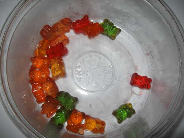 Si hay una gran cantidad de vodka/jugo de sobra en el fondo del tupper, puedes quitarla o dejarla para ser absorbido por los ositos mientras se queden en el tupper.