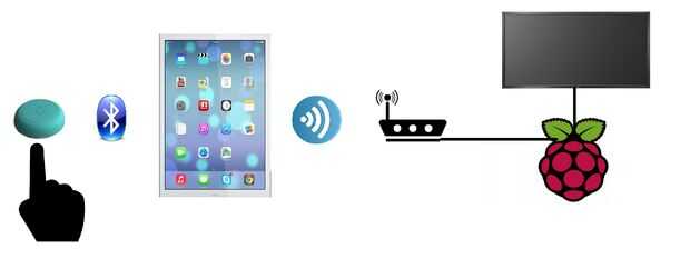 Botón de FLIC empujando la acción envía una información a la aplicación de teléfono inteligente de Flic que realizar una petición HTTP a un servidor Web escucha de RPi, eso es todo. En RPi un sencillo script Lee HTTP petición contenido e interactuar con la OSMC api y un módulo de relés.