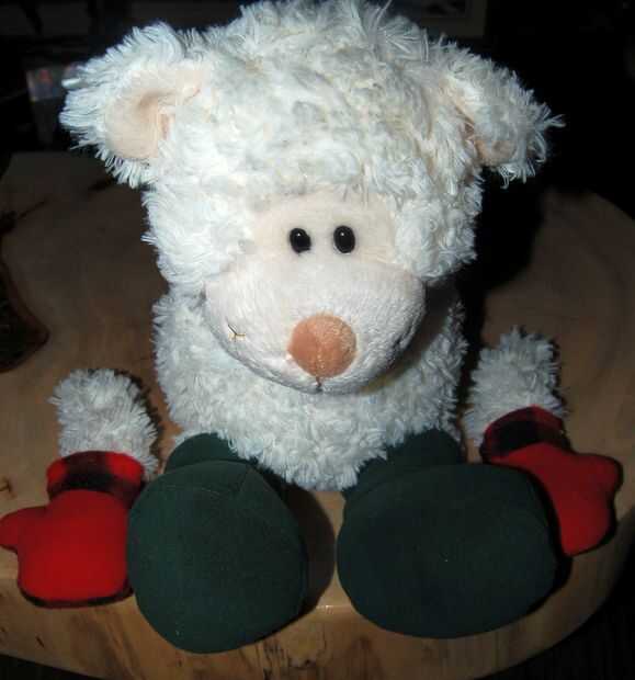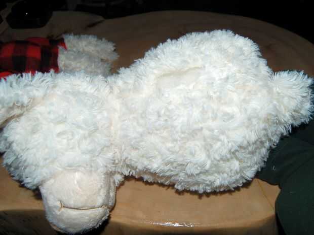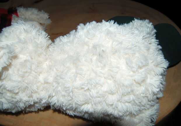 En este momento con los dedos hacer un agujero a través del cuerpo de relleno entre los agujeros laterales. Asegúrese de que tiene el agujero en el centro con la misma cantidad de relleno en la parte delantera y detrás del orificio para manos poco permanecerá la más caliente durante el uso.