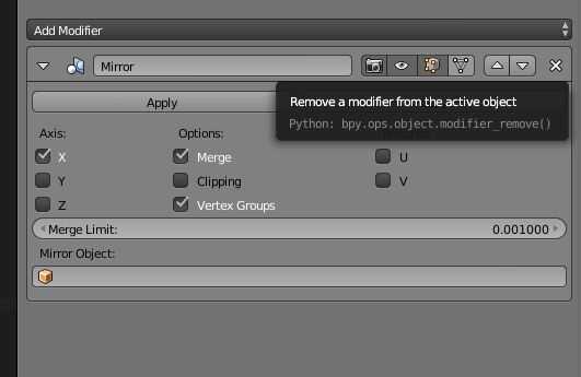 Puesto que las piernas son asimétricas por cuenta propia, acabo no podía duplicar cada pata y pasar; Tuve que les espejo. Utilicé el modificador espejo en Blender para hacer justo esto y salió perfectamente.