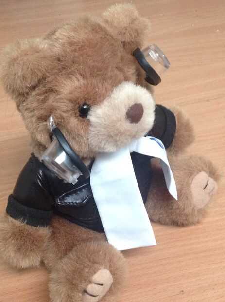 esto es Wilbear Wright, descendiente indirecto de los hermanos de Wright en Dayton, Ohio. (En realidad, es una recompensa de servicios Parque Nacional scavenger hunt) Es uno de los más lindos momentos de aviación que tengo.