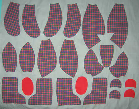 En el oído que usé dos de tela gris y dos de la tela de color azul. También usé azul en la parte inferior de los pies. Como se dijo antes, puede usar dos tipos para tener el oído y pies piezas destacan un poco, pero totalmente hasta usted!