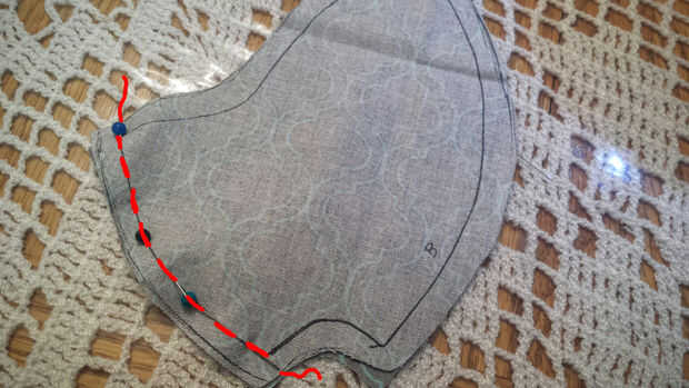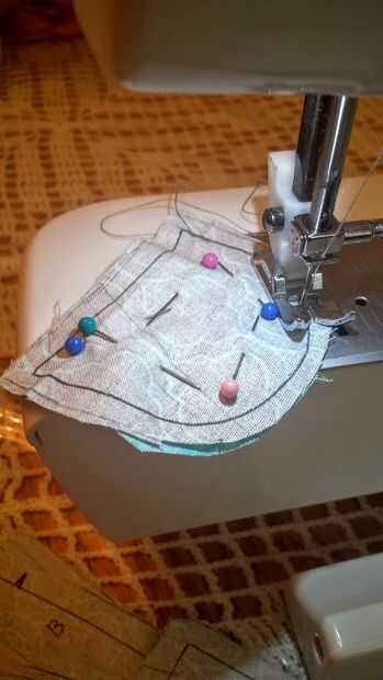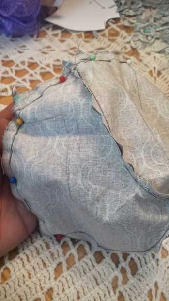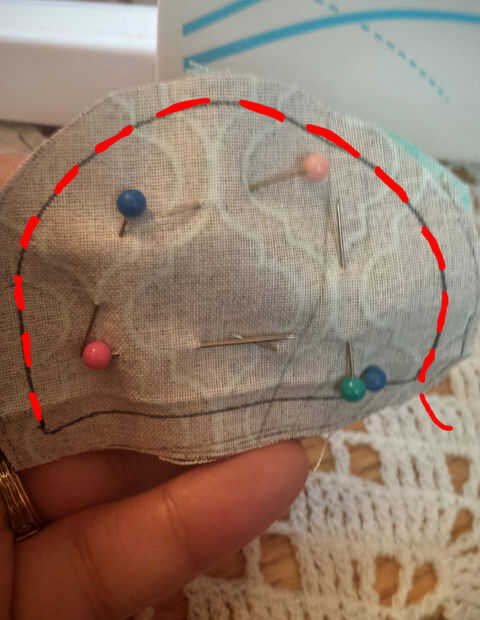 4. Coge las piezas de atrás cabezal, coloque junto con bonita cara hacia adentro. PIN y coser sólo un lado.