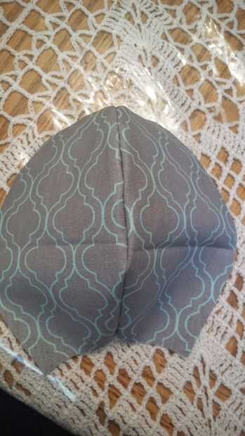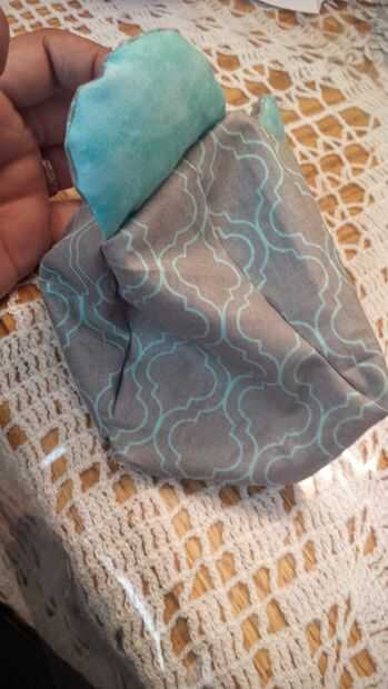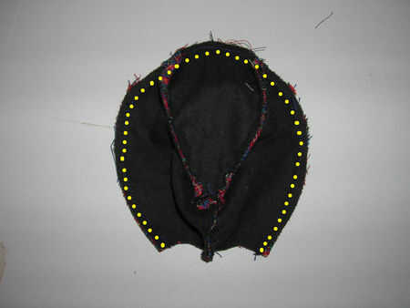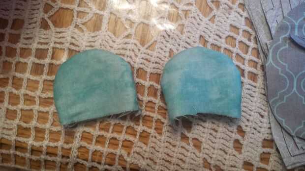 2. Agarra tus auriculares y poner juntos, uno azul, uno gris. (eso es si usted está usando dos colores diferentes) y coser a lo largo de la curva, deja abierta la parte inferior. puede rellenar el oído con algún relleno fibra de poliéster que no aparecen tan plana en la cabeza.