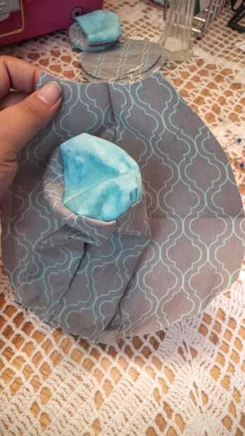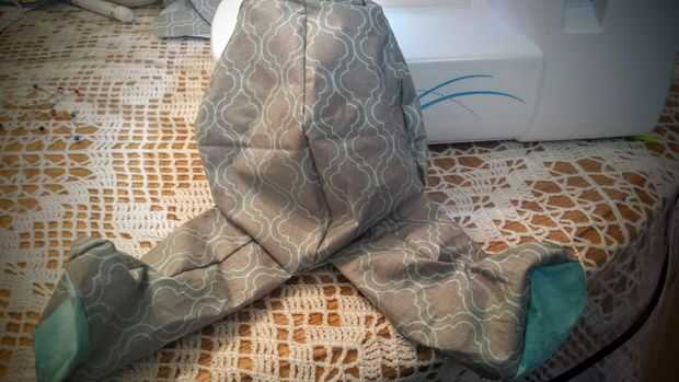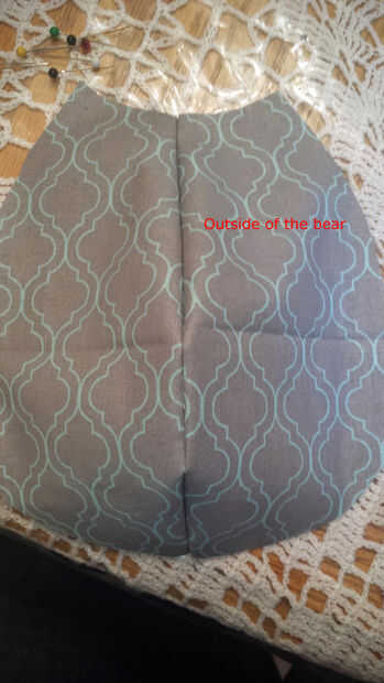 5. Ahora montar la parte frontal y trasera cuerpo uno encima del otro, con el lado bonito hacia. PIN y coser todo el borde con el boquete en la parte superior donde la cabeza debe estar.