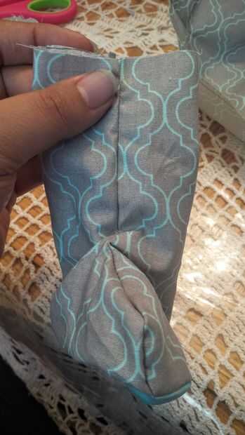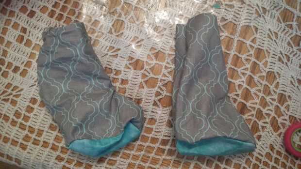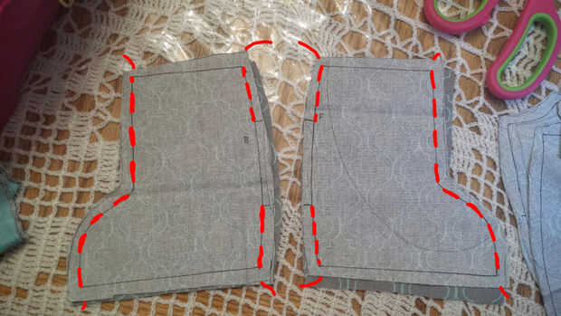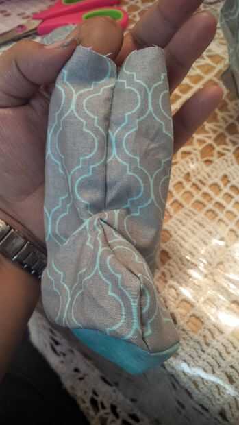 2. Luego coge las piezas de la pierna, montar ambos y coser desde el dedo del pie a la parte superior y la parte posterior del pie, dejando un espacio para el relleno.