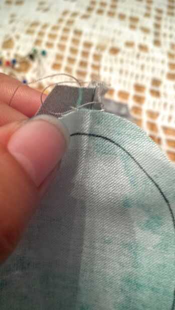 1. Coge las dos mitades del cuerpo delantero y coser a lo largo del lado más largo como se muestra en la imagen.