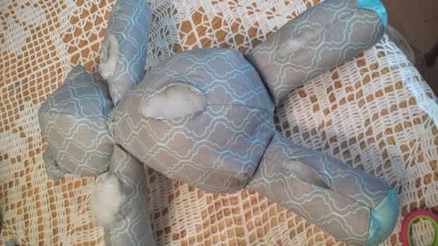 El espacio en la parte posterior del peluche, usted puede ahora darle la vuelta otra vez hacia fuera.