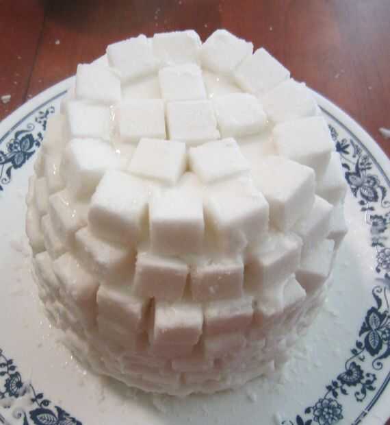 -en la parte superior del iglú Vierta el azúcar pegamento en el interior los cubos para estabilizarlos