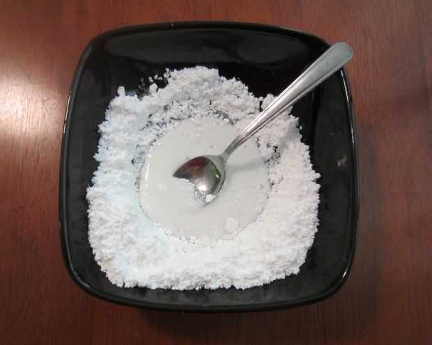 2. para el pegamento del azúcar de los cubitos de azúcar necesita mezclar en un tazón de fuente de polvo de azúcar y agua. Iniciar con 1-2 tazas de azúcar en polvo y 1-2 cucharada de agua. Mezclar bien hasta que la consistencia es como una pasta. Para probar y asegurarse de que no es a acuosa, se puede apilar 2 cubos mutuamente con el azúcar del pegamento y lado el cubo superior sobre. Si el cubo superior se mantiene aún en la parte superior, el pegamento del azúcar es bastante fuerte. Cantidad total de polvo que he utilizado fue la aplicación 1,25 libras.